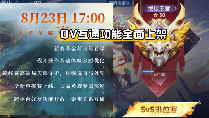 再者就是新赛季qv互通功能会全面开放,这个意思就是新赛季qq区的玩家可以直接在游戏中看到微信区的好友了,不需要通过房间加入,而且亲密度也可以互通了。这个调整,也是比较不错的哦,玩家们可以注意一下。
