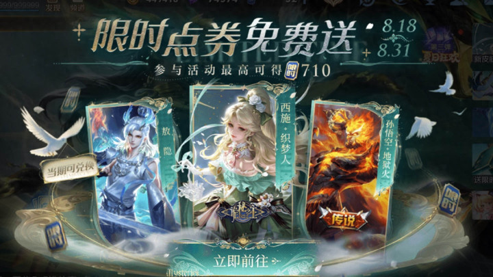 而且利用限时点券可以兑换王者荣耀的皮肤,其中除了有西施的织梦人新皮肤之外,孙悟空的地狱火也是可以免费兑换的。