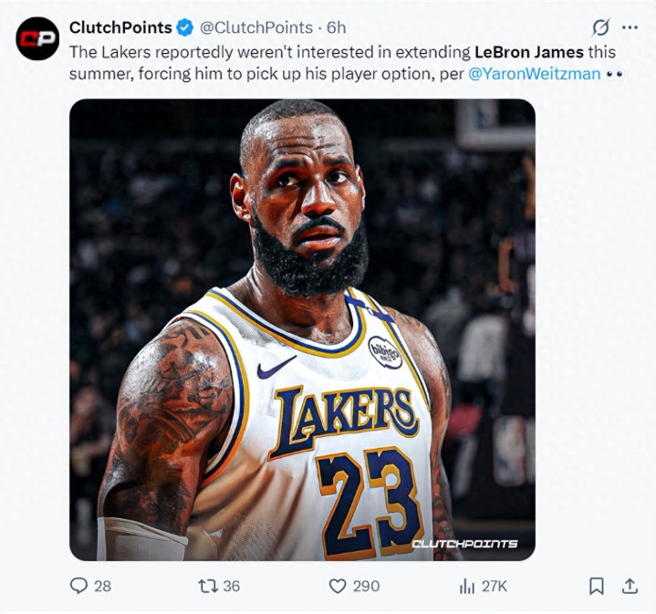 北京时间9月26日,NBA记者YaronWeitzman透露,湖人队今夏没有跟勒布朗-詹姆斯谈续约事宜,勒布朗方面想跳出合同继续签1+1合同可湖人方面拒绝,最终迫使勒布朗接受5260万的球员选项。