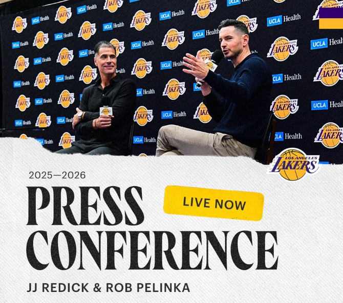 北京时间9月26日,湖人为新赛季召开新闻发布会,湖人总经理佩林卡和主教练JJ-雷迪克出席并且回应很多问题,佩林卡重申希望詹姆斯终老湖人,雷迪克透露詹姆斯、里夫斯目前状态极佳,期待见到最强版本的东契奇,新赛季的目标剑指总冠军。